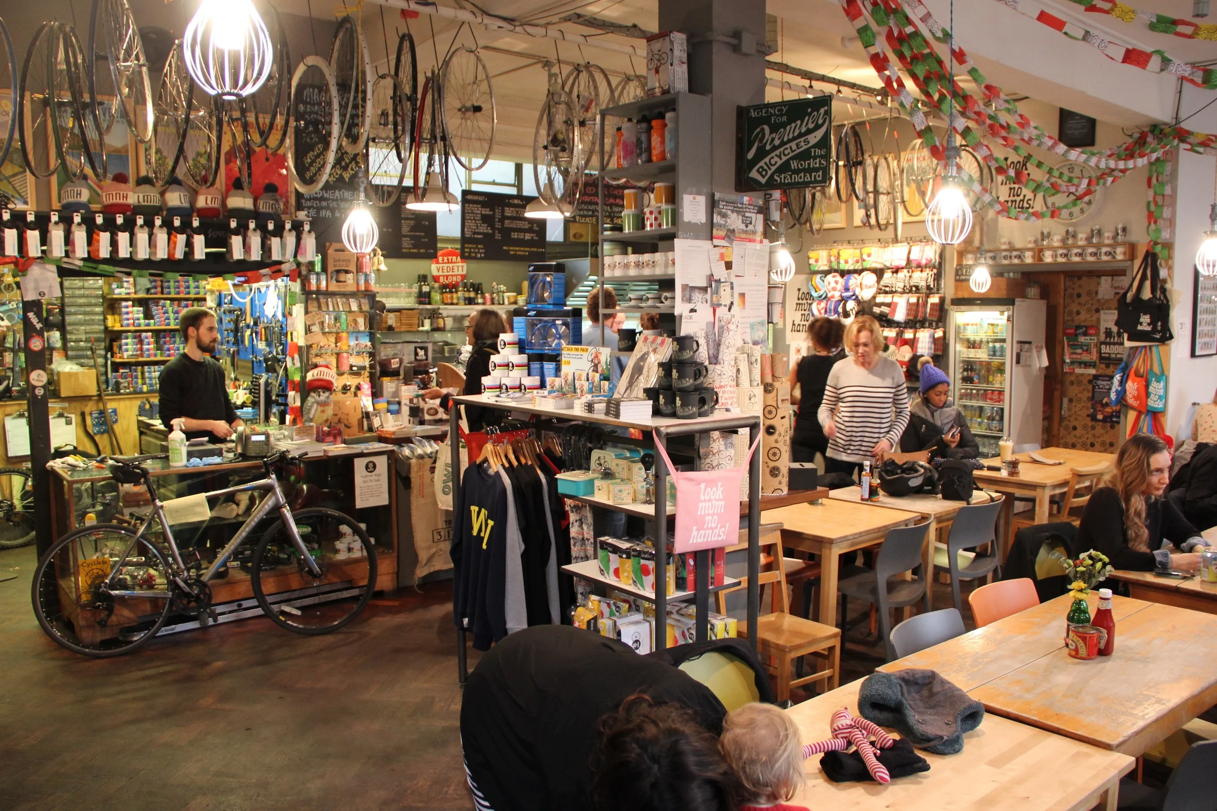 We were still curious about the name though. "Sam came up with the name. It's a bit like forming a band trying to decide on something. A lot of the design people we spoke to were a bit doubtful - they went quiet when we told them! But it's a name that everyone can identify with. It's not a macho or a sporty name. Cycling should be about fun and enthusiasm. Bike shops that are very male spaces can be quite intimidating - our name is inclusive. We didn't want to be lumped in with the 'hipster cafe' thing although we opened at the time when the whole fixed gear thing exploded." And true to Lewin's word the cafe's customers we saw included people coming to get their bikes serviced, Mums with toddlers, city types in suits, urban cyclists, creatives with laptops and twenty-something ladies who lunch.