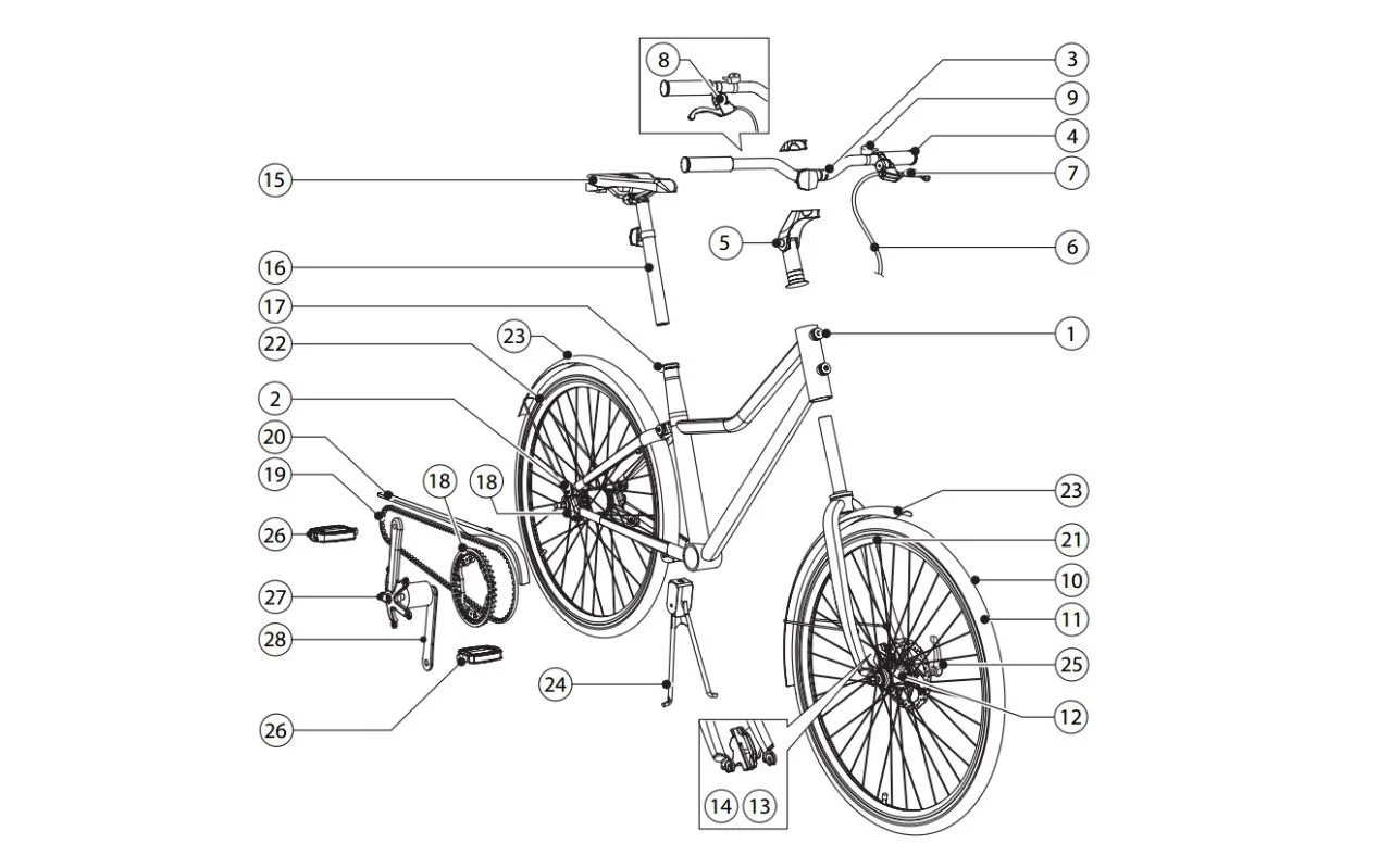 Sadly they don’t have any in stock yet, so we haven’t been able to attempt to assemble one. But they did send us the 14-page instruction manual. The kit includes three different sized Allen keys and a spanner - the only extra tools you’ll need are a pair of scissors to cut some cable ties and a Phillips screw driver! They’ve managed to get the parts down to just 28 which sounds pretty economical to me and the whole thing can be assembled in 16 ‘simple’ steps without any bike mechanic experience.