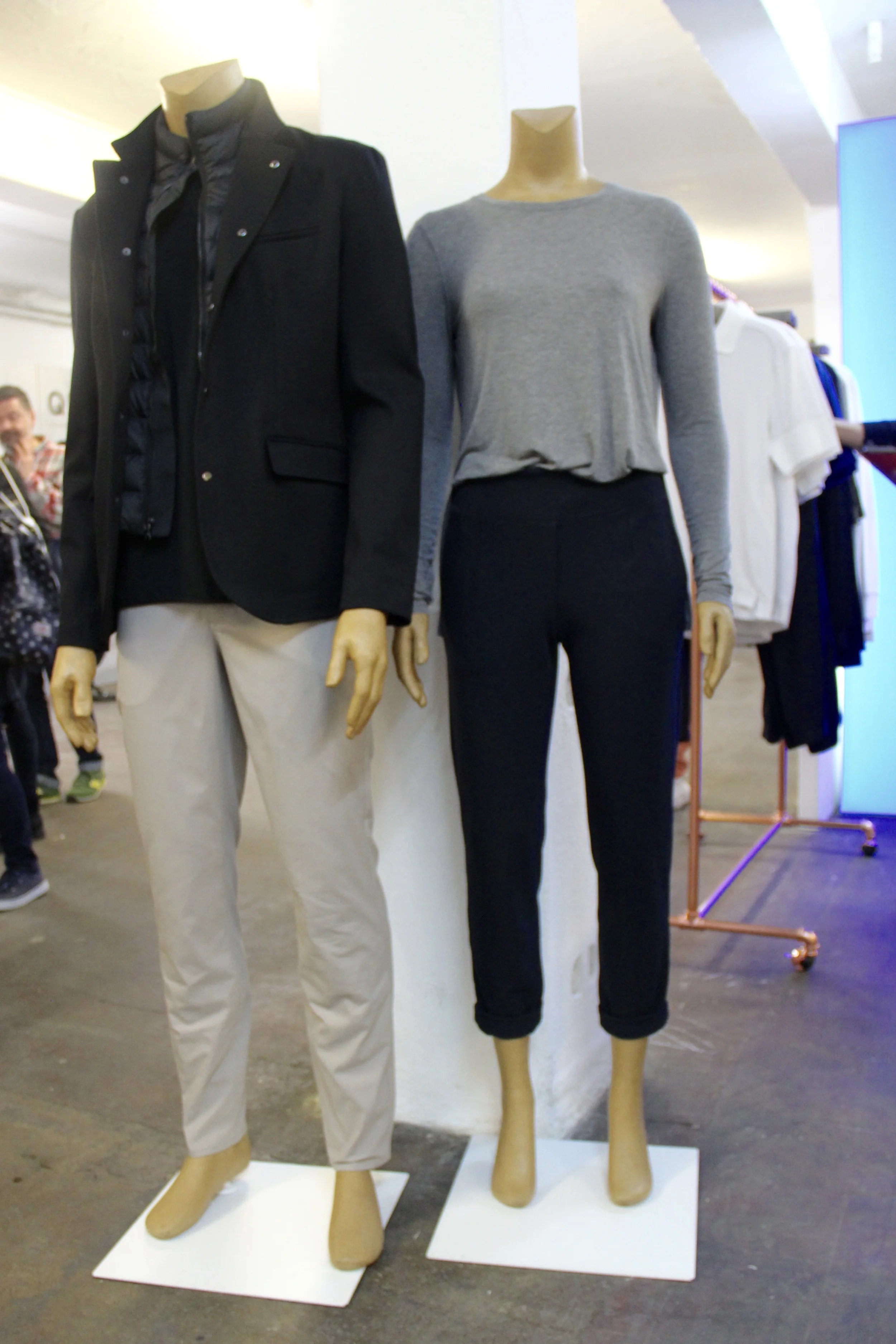 For the guys, there was a great choice of urban wear. We liked some of the offerings from Chapeau! but our favourite was a brand called Kit and Ace who have a smattering of outlets in London and an online shop. They specialise in 'commuter clothing' but you don't really need to dress in any particular way to catch the bus! Their pieces are not cycle-specific, but would be great to cycle in, with trousers being made from water-resistant fabric with a four-way stretch, and shirts in 'technical' cashmere which they promise won't stretch or shrink. They felt gorgeous to the touch and if they weren't so expensive we would've bought the lot!