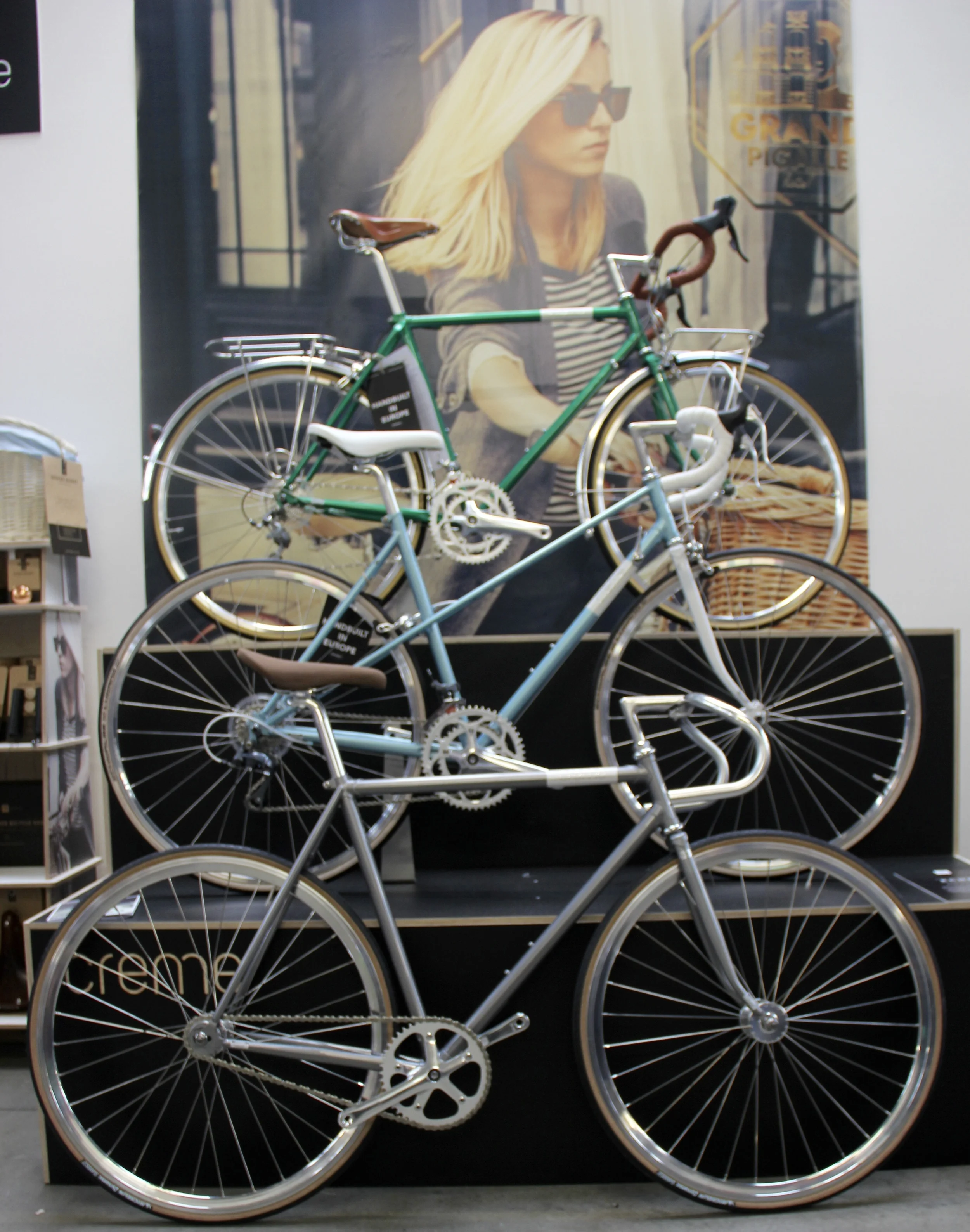 No we haven't forgotten the actual bikes! There were plenty on display to fondle and fantasise about, from Cinelli track frames to roadsters from Ruff Cycles and city bikes by Quella. Bespoked cycle designers such as Caren Hartley were also showcasing their talents. We were on the look out for something new to catch our eye and we found just that at the stunning Creme stand opposite the enormous projector screening of the exciting Giro d'Italia stage 15. But it was Creme that captured our attention, rather than Nibali being dropped in the last few kilometres!