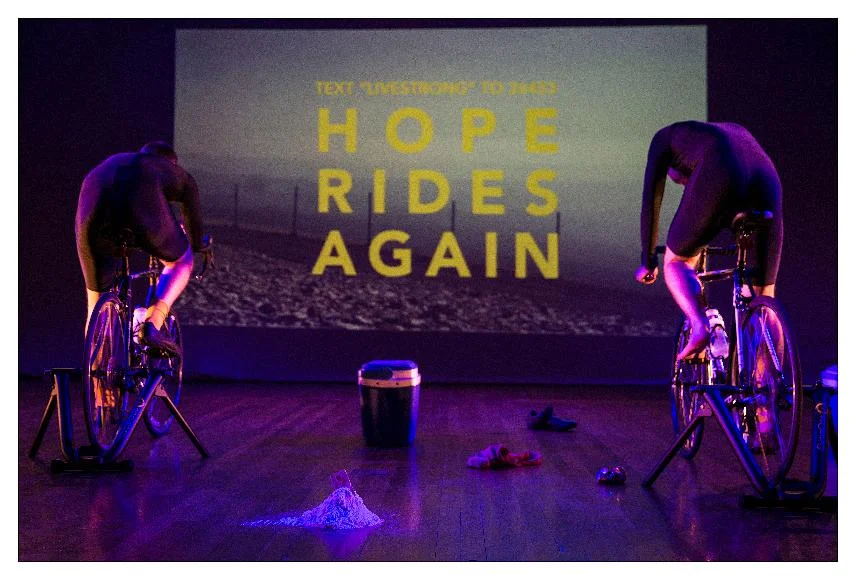 Writer Tom Barnes, who plays Pantani says that, “We take elements of live art and contemporary performance but it’s got this very strong, true narrative that runs through it.” Some of the dialogue is quoted verbatim from the riders’ interviews and books and they have been able to draw on this material as a starting point in the dividing process between these two very different characters.