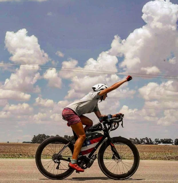 The race started on June 4 in Astoria, Oregon and travelled through 10 states, coast to coast across America. Competitors have to ride self-supported existing on minimal sleep and creature comforts. On the last night, Wilcox slept for just half and hour by the side of the road. She even had to eat all of her 10,000 calories a day while riding her Ruby Specialized road bike.